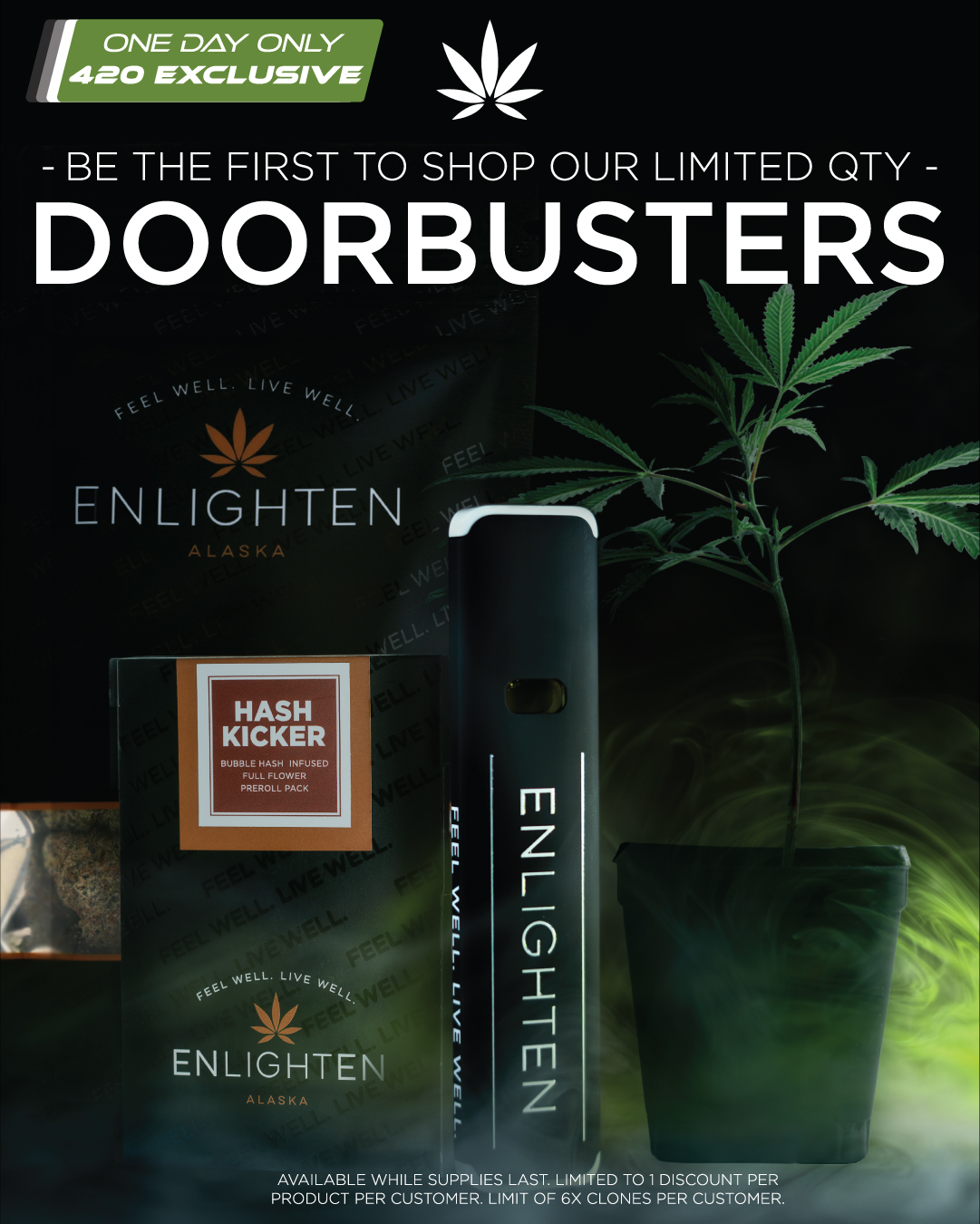 Enlighten Alaska 420 Doorbusters – limited quantity cannabis deals Anchorage