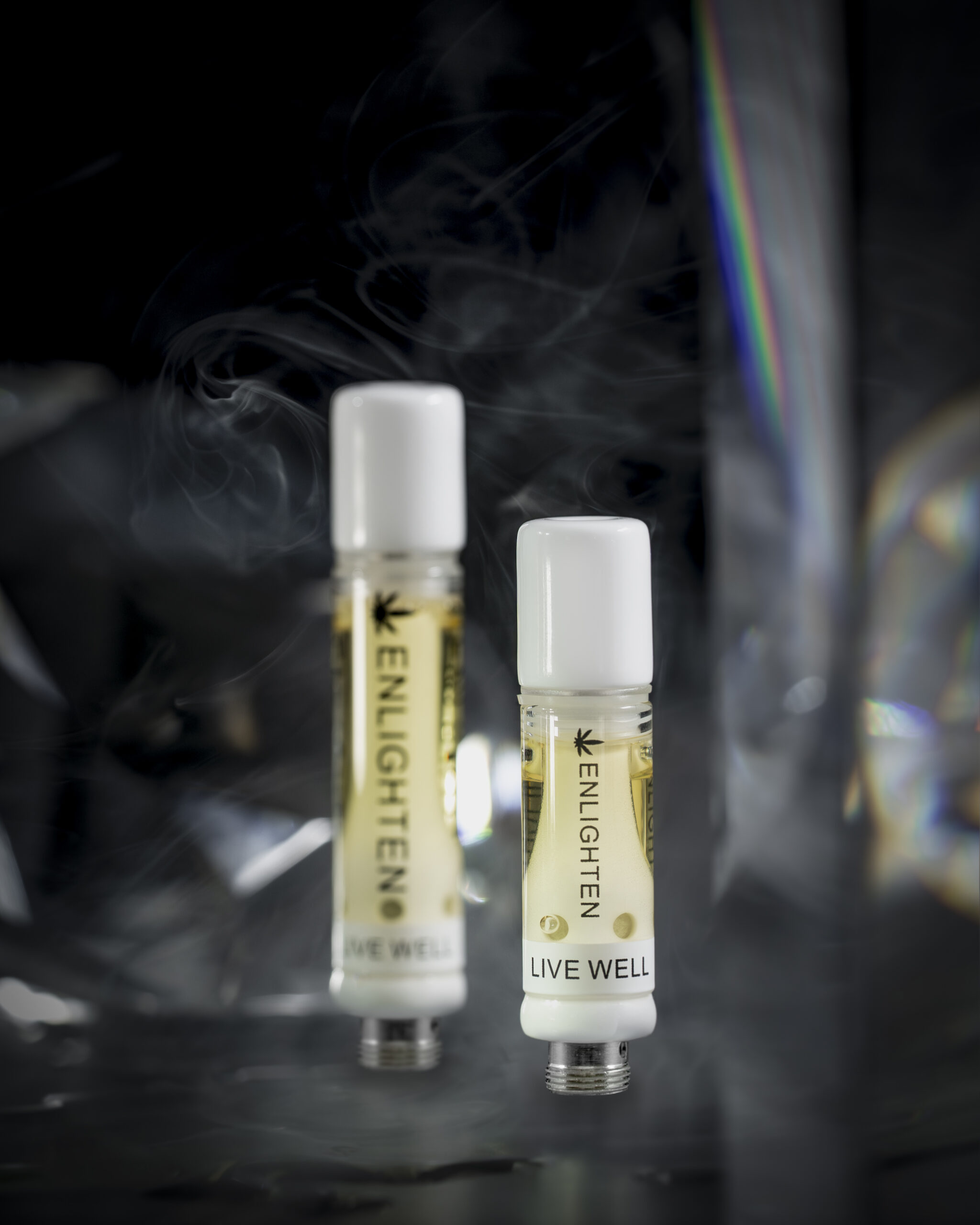 Enlighten Alaska 0.5g full spectrum CO2 510 thread vape cartridge and mylar packaging – Alaska cannabis dispensary product